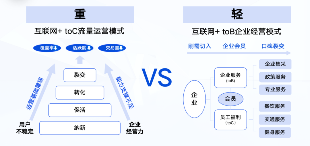 未来的产业园区,不应仅仅被看作是一个单纯的物理空间,而需将其当作一个充满活力的有机产业生态系统以及资源高度聚合的集合地来精心运营。然而,目前众多园区在服务运营方面采用的是C端重运营模式。在这种模式下,用户群体稳定性差以及园区自身经营能力不足,双重buff叠加,严重制约了园区服务的覆盖范围拓展、用户活跃度提升以及整体交易量增长。数智园区3.0