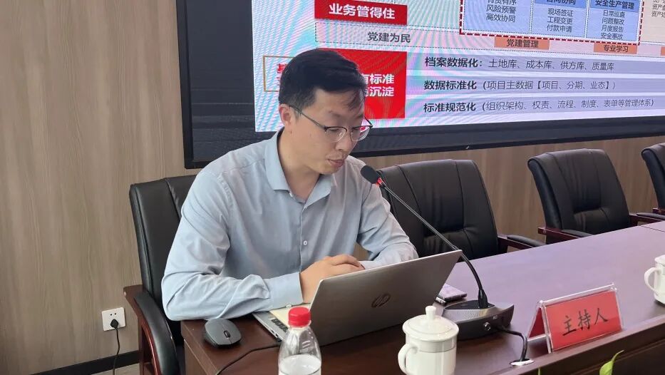 首先,明源云项目经理汤凯钧对本次数字化项目管理平台试点上线作系统方案建设整体汇报。项目团队通过对临安城投高层的充分调研、完整梳理需求后,搭建出贴合临安城投需求的数字化总蓝图,明确了“建设以投资控制为龙头、计划进度为主轴、造价管控为基础、质量安全为保障的项目全过程数字化管控平台”的主线目标,并梳理计划进度-造价管理-质量安全三大核心场景的数字化业务标准和管控权责。
